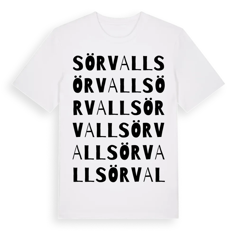 Sörvall ordlek t-shirt är inspirerad av Sörvall i Gävleborgs län, Sverige. Tröjan är designad för dig som har en speciell koppling till platsen – oavsett om du bor här, har rötterna här eller bara älskar Sörvall.