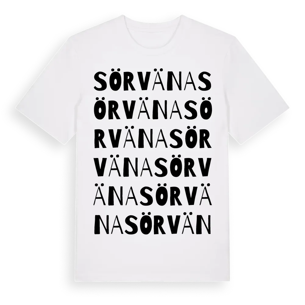 Sörväna ordlek t-shirt är inspirerad av Sörväna i Gävleborgs län, Sverige. Tröjan är designad för dig som har en speciell koppling till platsen – oavsett om du bor här, har rötterna här eller bara älskar Sörväna.