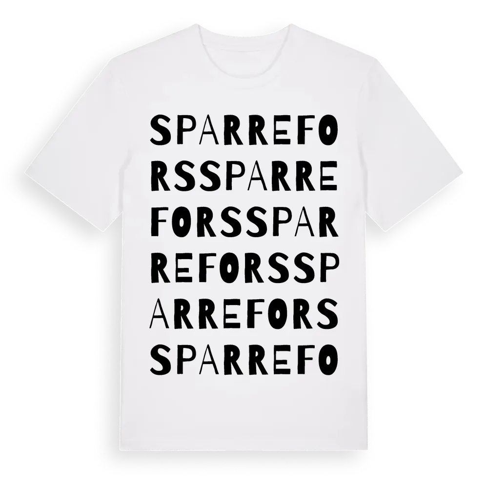 Sparrefors ordlek t-shirt är inspirerad av Sparrefors i Gävleborgs län, Sverige. Tröjan är designad för dig som har en speciell koppling till platsen – oavsett om du bor här, har rötterna här eller bara älskar Sparrefors.