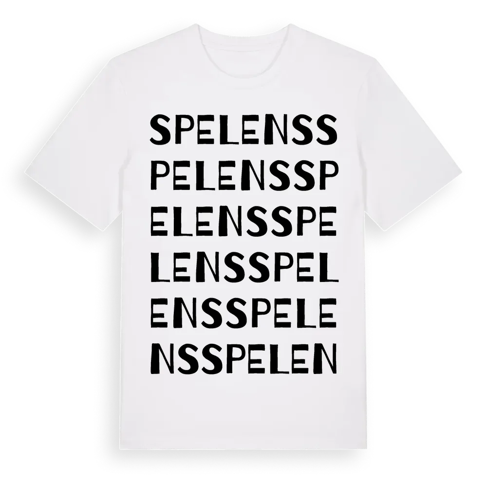 Spelens ordlek t-shirt är inspirerad av Spelens i Gävleborgs län, Sverige. Tröjan är designad för dig som har en speciell koppling till platsen – oavsett om du bor här, har rötterna här eller bara älskar Spelens.
