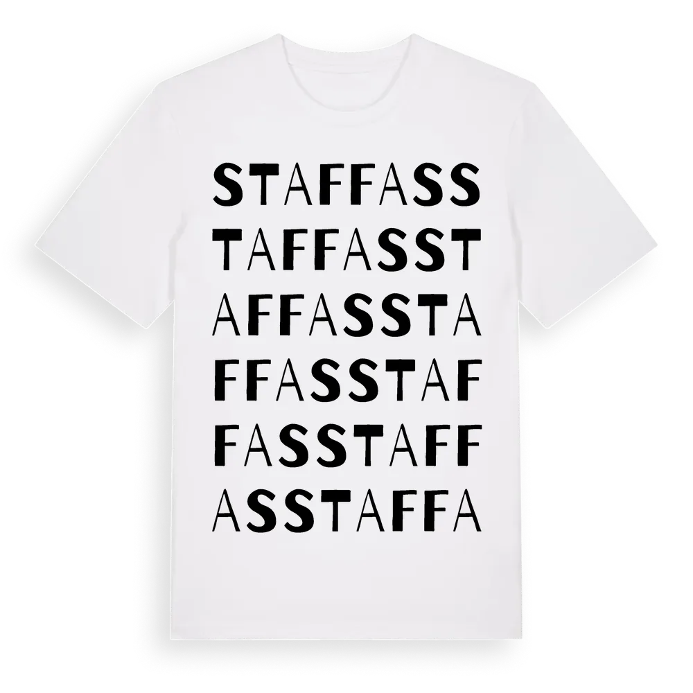 En ordlek byggd på Staffass namn. Subtilt och klurig – ett motiv som bara de som verkligen känner platsen fullt ut förstår. Premium bomull, unisex – från byn Staffas i Gävleborgs län.