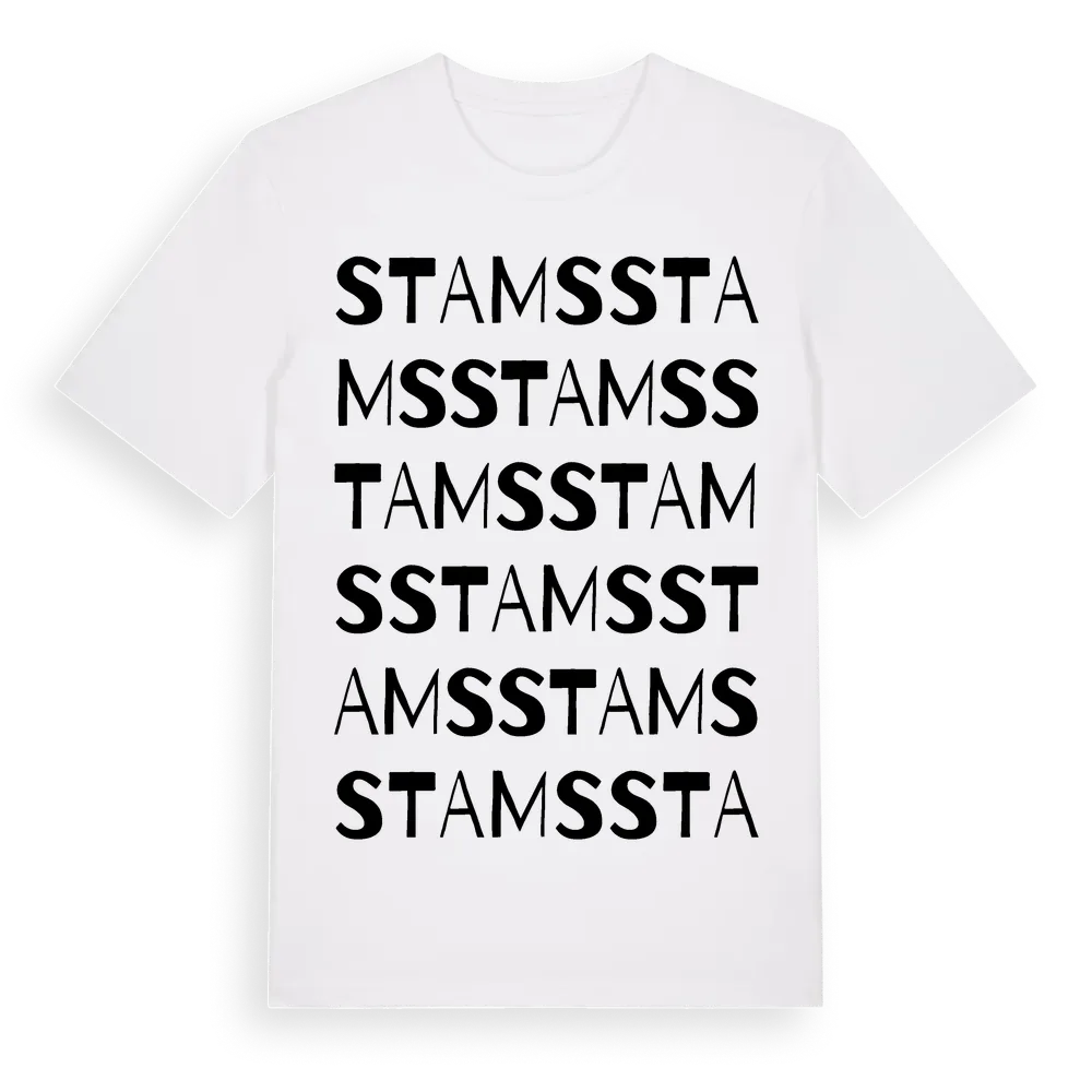 En ordlek byggd på Stamss namn. Subtilt och klurig – ett motiv som bara de som verkligen känner platsen fullt ut förstår. Premium bomull, unisex – från Stams i Gävleborgs län.