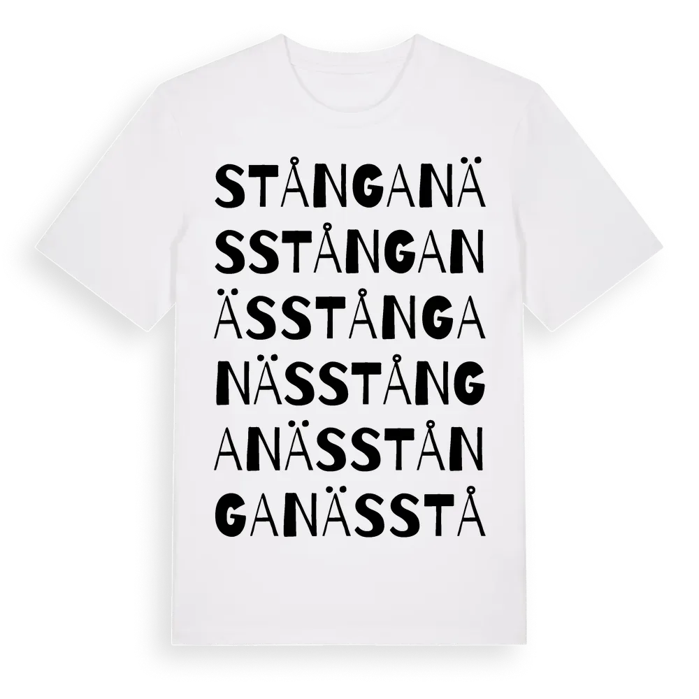 En ordlek byggd på Stånganäss namn. Subtilt och klurig – ett motiv som bara de som verkligen känner platsen fullt ut förstår. Premium bomull, unisex – från Stånganäs i Gävleborgs län.