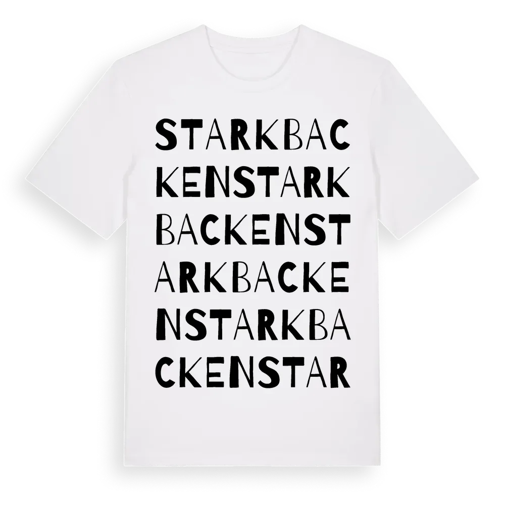 En ordlek byggd på Starkbackens namn. Subtilt och klurig – ett motiv som bara de som verkligen känner platsen fullt ut förstår. Premium bomull, unisex – från Starkbacken i Gävleborgs län.