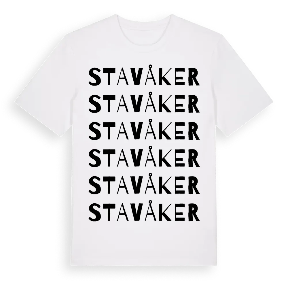 Stavåker ordlek t-shirt är inspirerad av byn Stavåker i Gävleborgs län, Sverige. Tröjan är designad för dig som har en speciell koppling till platsen – oavsett om du bor här, har rötterna här eller bara älskar Stavåker.