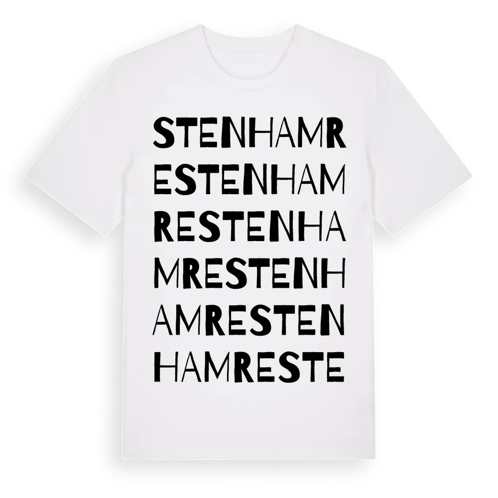 Stenhamre ordlek t-shirt är inspirerad av Stenhamre i Gävleborgs län, Sverige. Tröjan är designad för dig som har en speciell koppling till platsen – oavsett om du bor här, har rötterna här eller bara älskar Stenhamre.