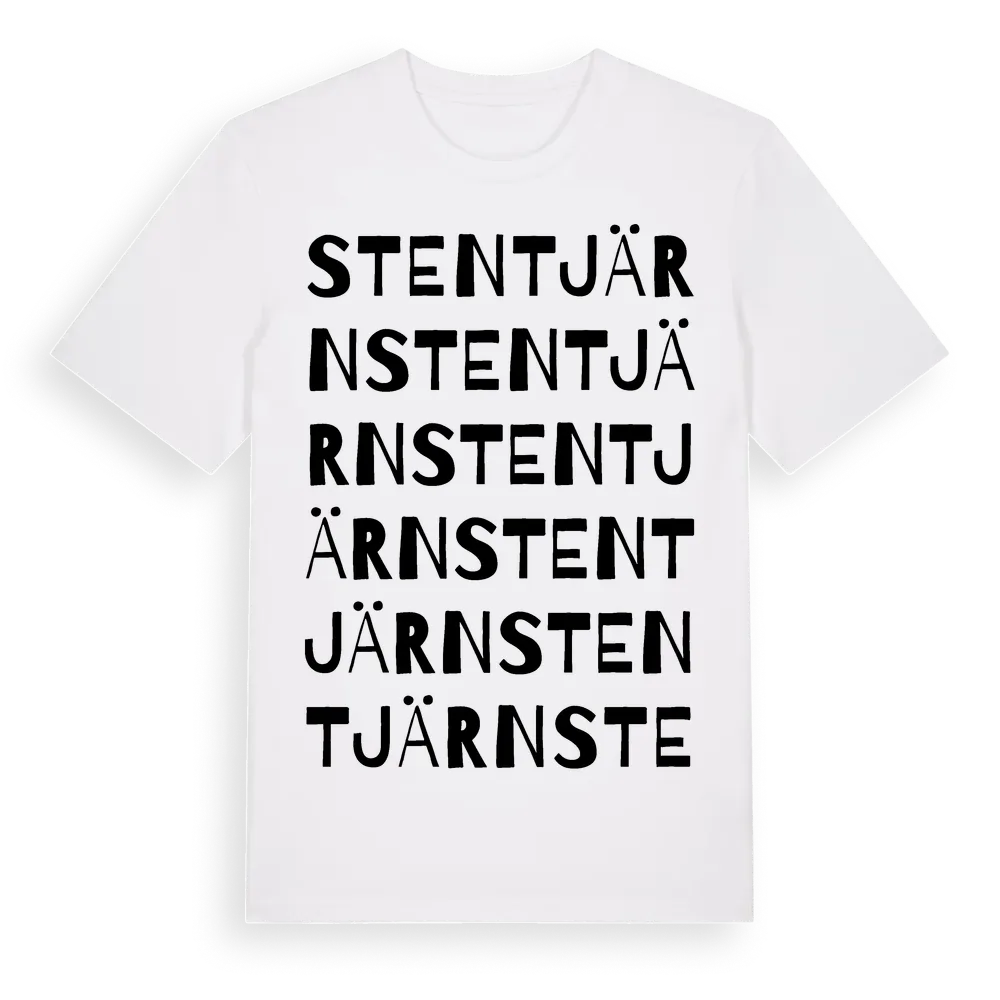 Stentjärn ordlek t-shirt är inspirerad av Stentjärn i Gävleborgs län, Sverige. Tröjan är designad för dig som har en speciell koppling till platsen – oavsett om du bor här, har rötterna här eller bara älskar Stentjärn.