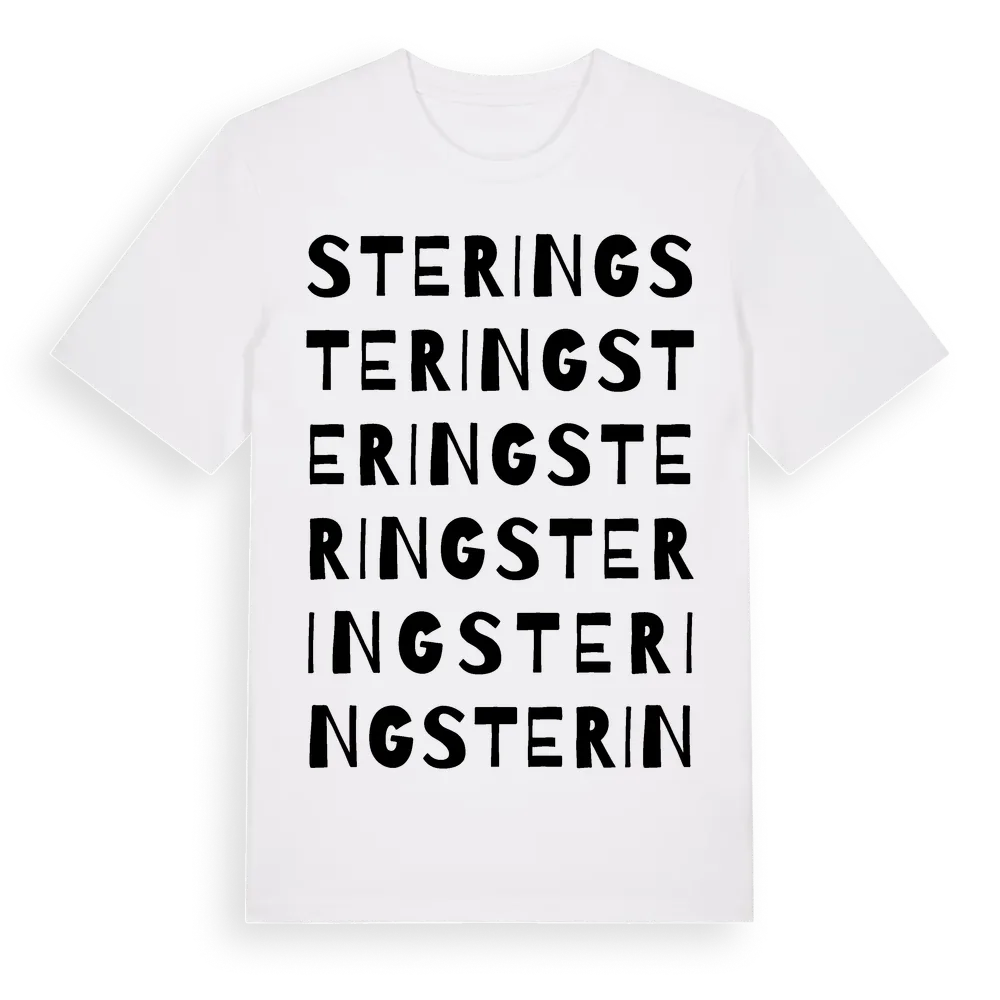 Stering ordlek t-shirt är inspirerad av byn Stering i Gävleborgs län, Sverige. Tröjan är designad för dig som har en speciell koppling till platsen – oavsett om du bor här, har rötterna här eller bara älskar Stering.