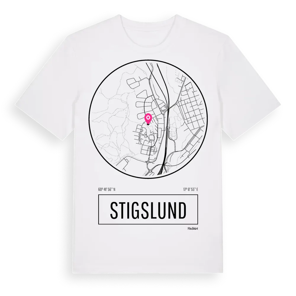 Stigslund t-shirt är inspirerad av stadsdelen Stigslund i Gävleborgs län, Sverige. Tröjan är designad för dig som har en speciell koppling till platsen – oavsett om du bor här, har rötterna här eller bara älskar Stigslund.