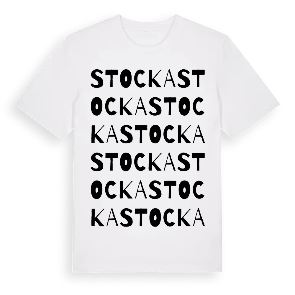 En ordlek byggd på Stockas namn. Subtilt och klurig – ett motiv som bara de som verkligen känner platsen fullt ut förstår. Premium bomull, unisex – från byn Stocka i Gävleborgs län.