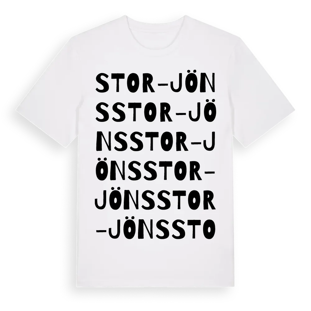 Stor-Jöns ordlek t-shirt är inspirerad av Stor-Jöns i Gävleborgs län, Sverige. Tröjan är designad för dig som har en speciell koppling till platsen – oavsett om du bor här, har rötterna här eller bara älskar Stor-Jöns.