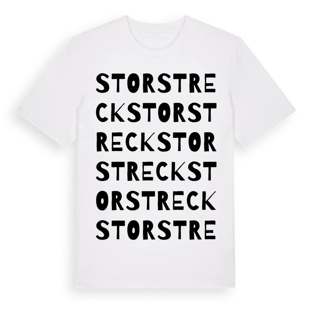 Storstreck ordlek t-shirt är inspirerad av Storstreck i Gävleborgs län, Sverige. Tröjan är designad för dig som har en speciell koppling till platsen – oavsett om du bor här, har rötterna här eller bara älskar Storstreck.
