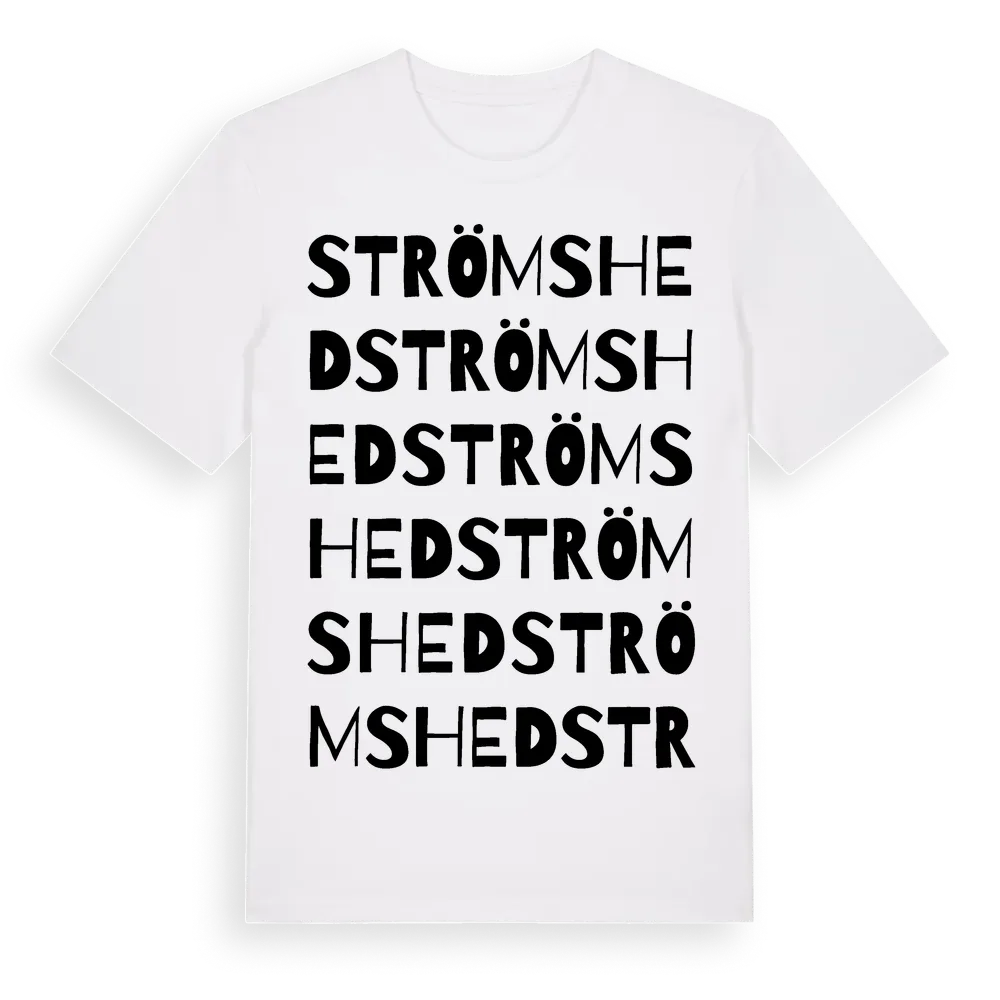 Strömshed ordlek t-shirt är inspirerad av Strömshed i Gävleborgs län, Sverige. Tröjan är designad för dig som har en speciell koppling till platsen – oavsett om du bor här, har rötterna här eller bara älskar Strömshed.