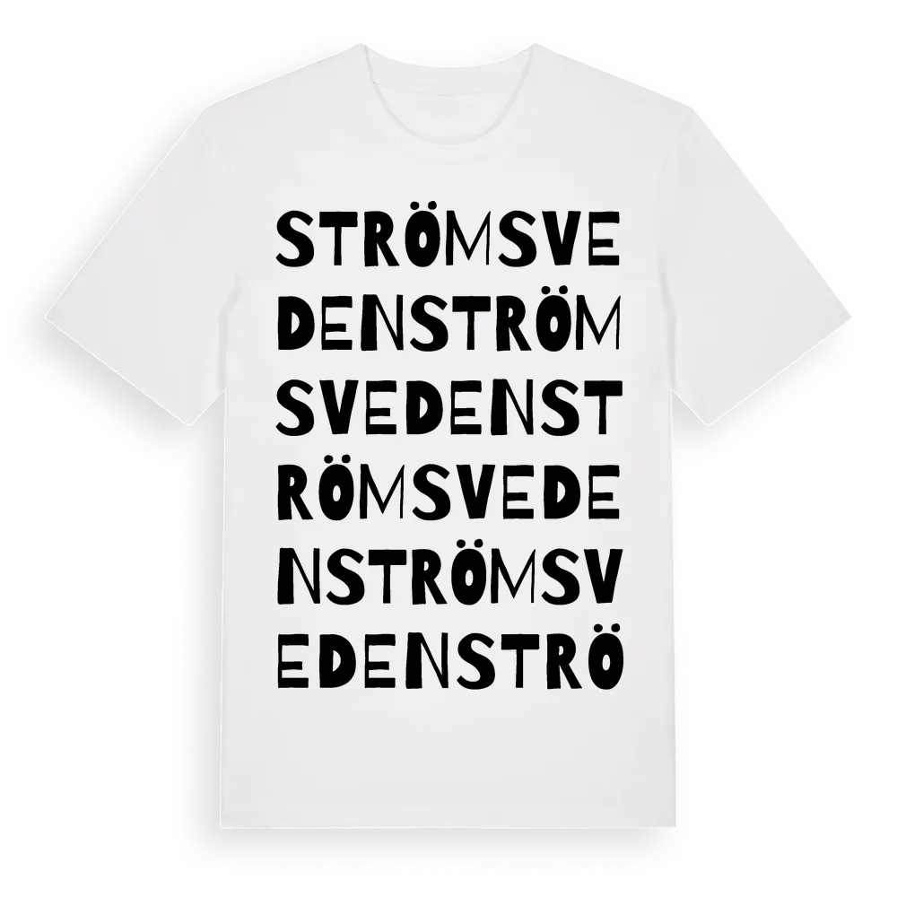 Strömsveden ordlek t-shirt är inspirerad av Strömsveden i Gävleborgs län, Sverige. Tröjan är designad för dig som har en speciell koppling till platsen – oavsett om du bor här, har rötterna här eller bara älskar Strömsveden.