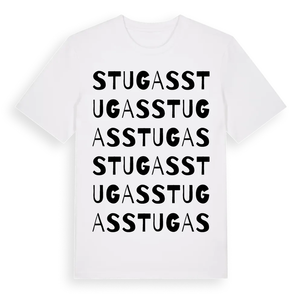 En ordlek byggd på Stugass namn. Subtilt och klurig – ett motiv som bara de som verkligen känner platsen fullt ut förstår. Premium bomull, unisex – från Stugas i Gävleborgs län.