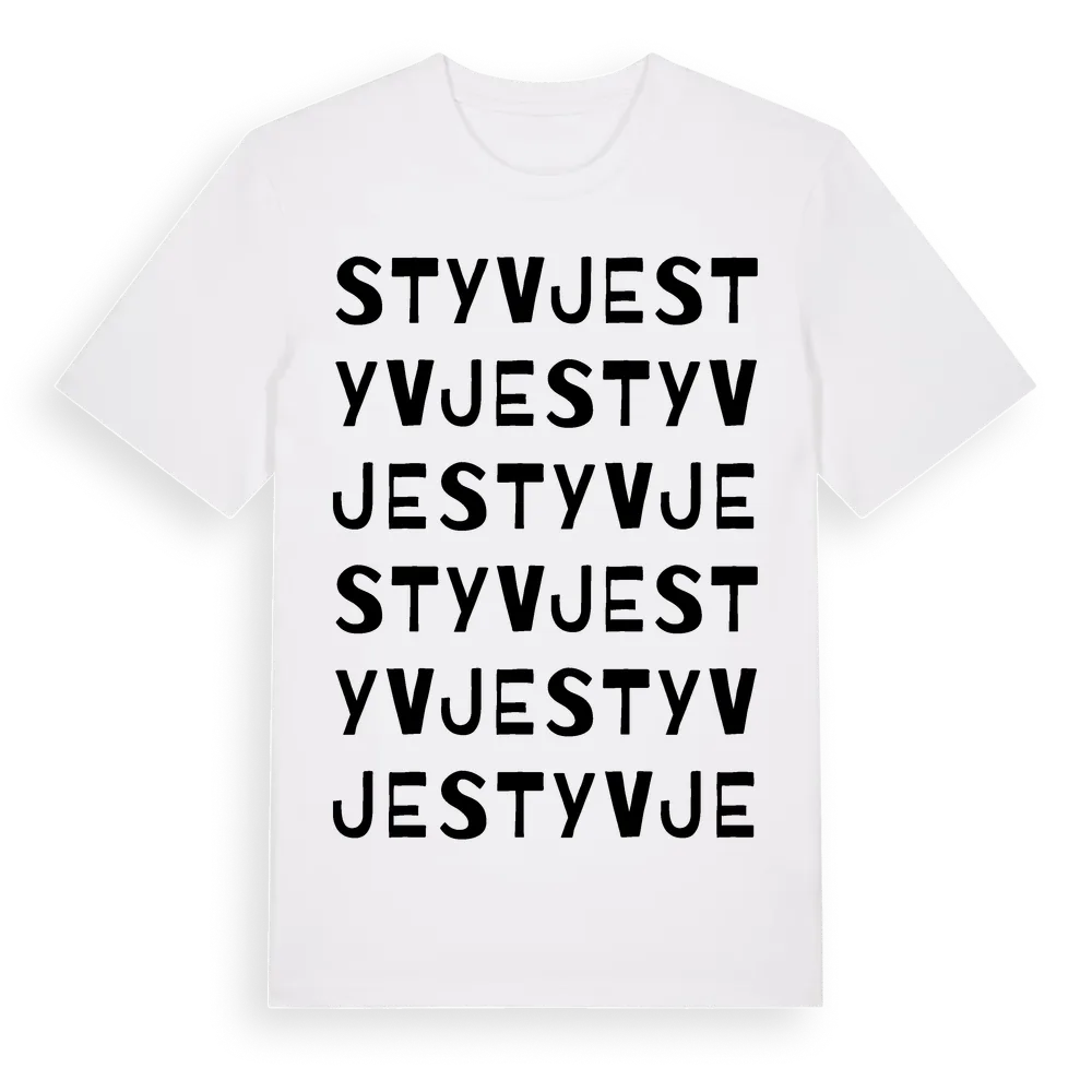 Styvje ordlek t-shirt är inspirerad av byn Styvje i Gävleborgs län, Sverige. Tröjan är designad för dig som har en speciell koppling till platsen – oavsett om du bor här, har rötterna här eller bara älskar Styvje.