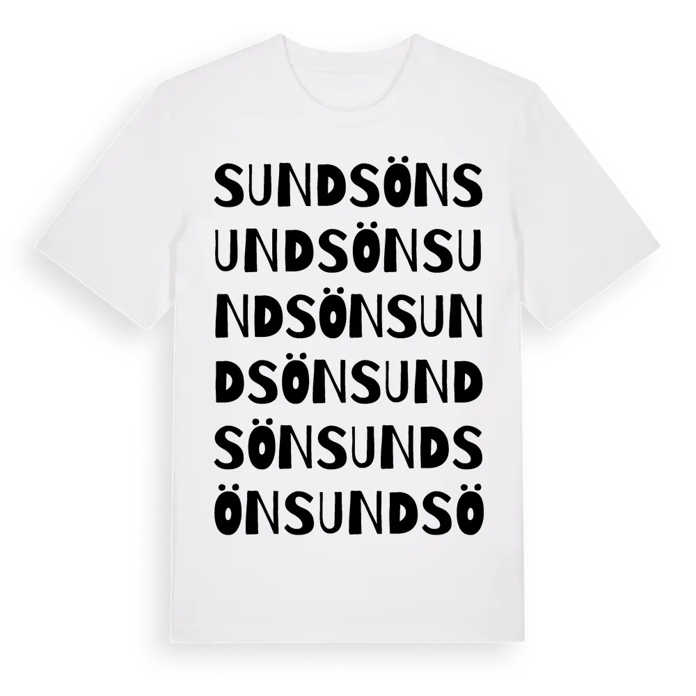 Sundsön ordlek t-shirt är inspirerad av Sundsön i Gävleborgs län, Sverige. Tröjan är designad för dig som har en speciell koppling till platsen – oavsett om du bor här, har rötterna här eller bara älskar Sundsön.