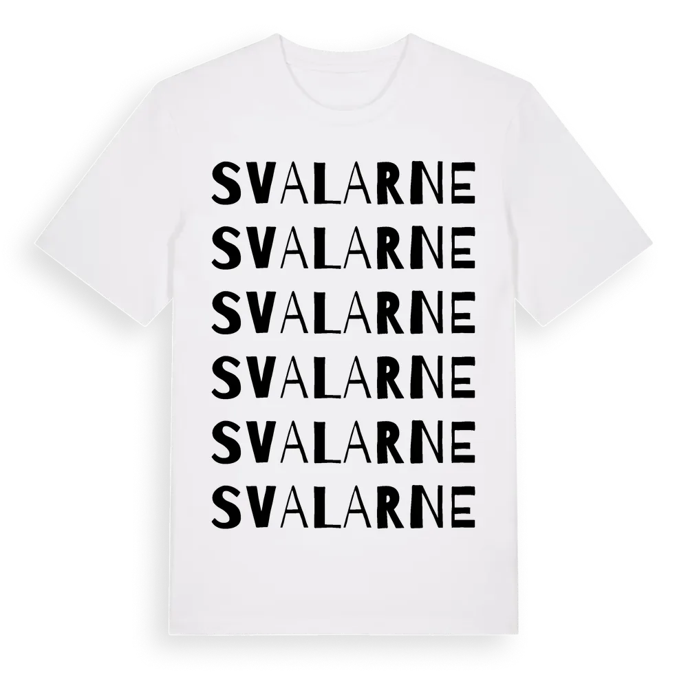 Svalarne ordlek t-shirt är inspirerad av Svalarne i Gävleborgs län, Sverige. Tröjan är designad för dig som har en speciell koppling till platsen – oavsett om du bor här, har rötterna här eller bara älskar Svalarne.