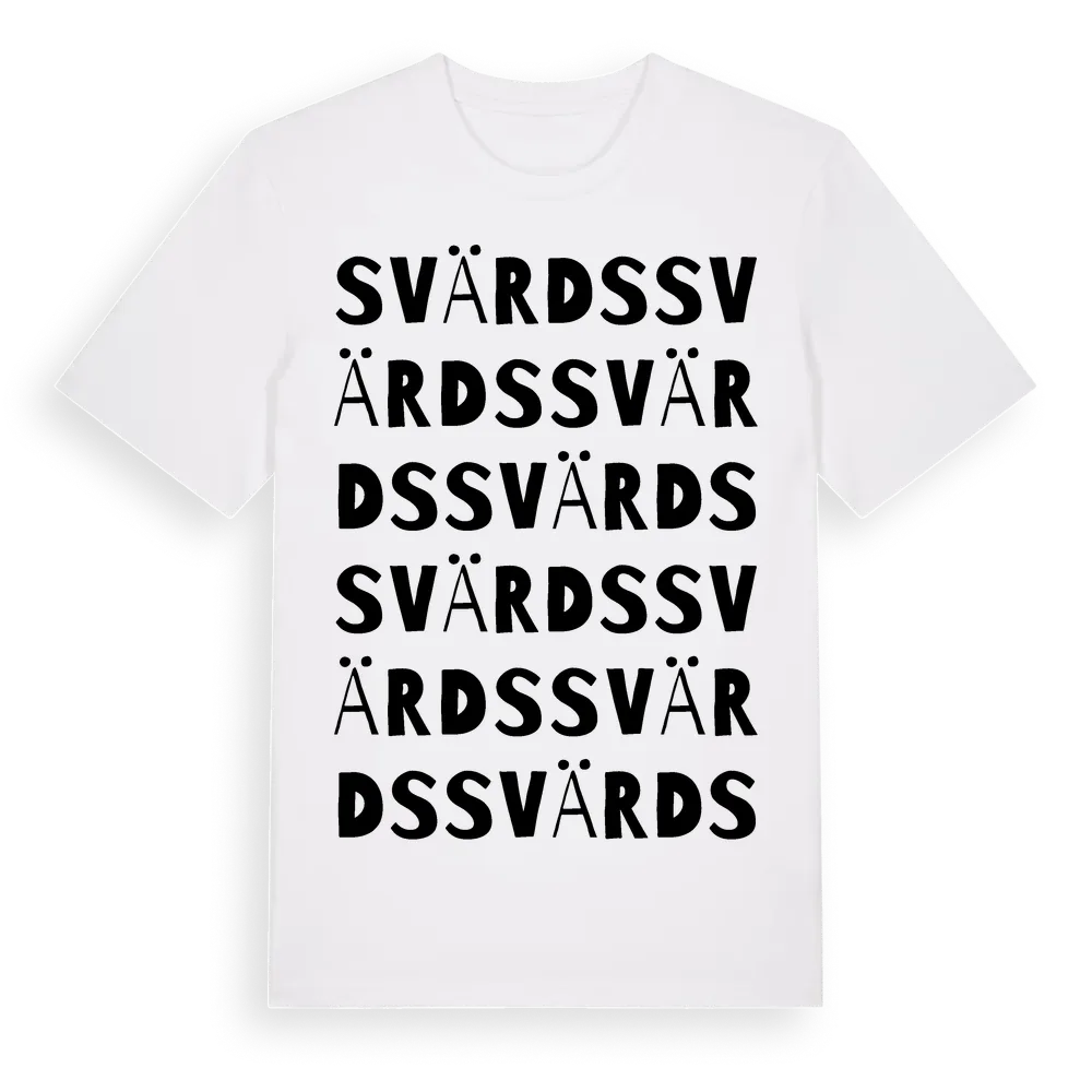 Svärds ordlek t-shirt är inspirerad av Svärds i Gävleborgs län, Sverige. Tröjan är designad för dig som har en speciell koppling till platsen – oavsett om du bor här, har rötterna här eller bara älskar Svärds.