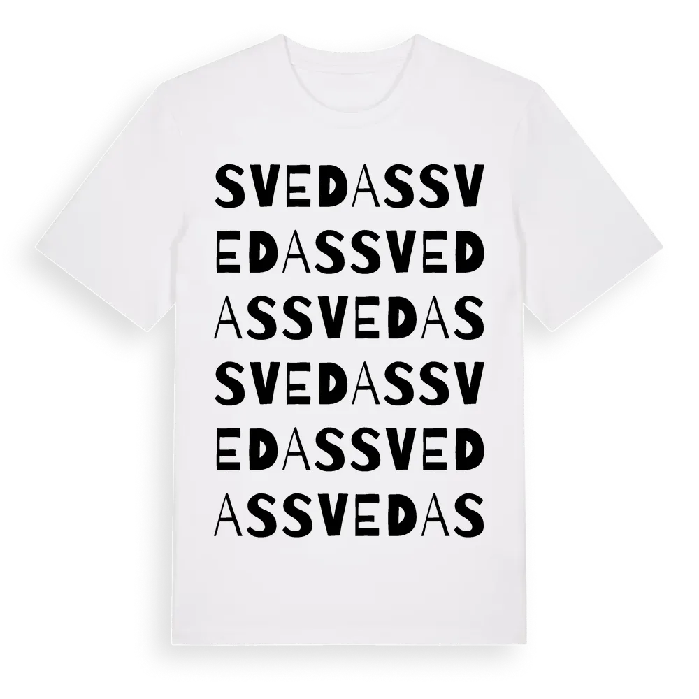 Svedas ordlek t-shirt är inspirerad av Svedas i Gävleborgs län, Sverige. Tröjan är designad för dig som har en speciell koppling till platsen – oavsett om du bor här, har rötterna här eller bara älskar Svedas.