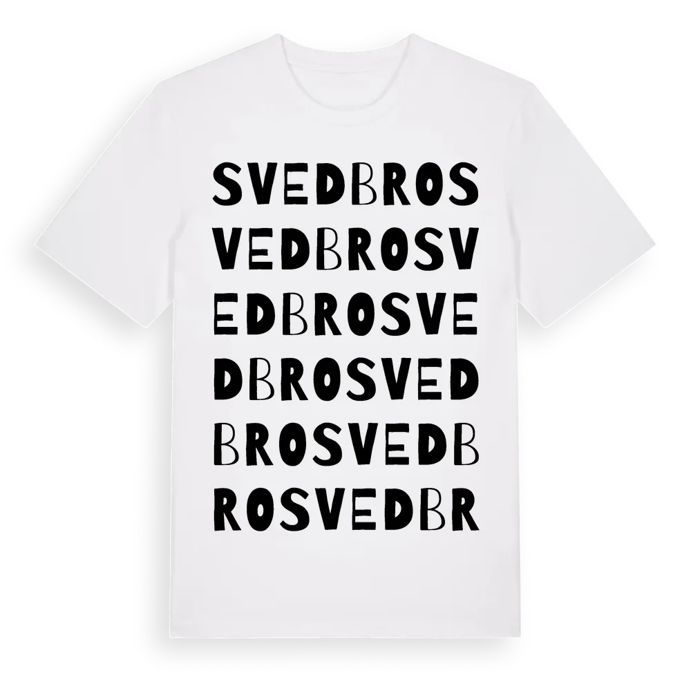 Svedbro ordlek t-shirt är inspirerad av Svedbro i Gävleborgs län, Sverige. Tröjan är designad för dig som har en speciell koppling till platsen – oavsett om du bor här, har rötterna här eller bara älskar Svedbro.