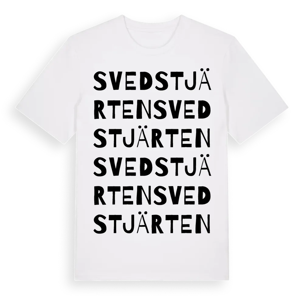 Svedstjärten ordlek t-shirt är inspirerad av Svedstjärten i Gävleborgs län, Sverige. Tröjan är designad för dig som har en speciell koppling till platsen – oavsett om du bor här, har rötterna här eller bara älskar Svedstjärten.