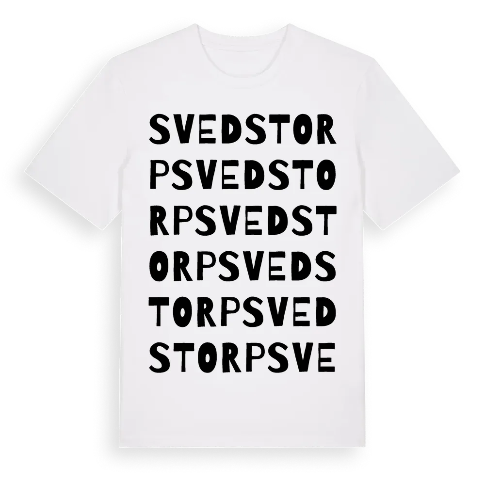 Svedstorp ordlek t-shirt är inspirerad av byn Svedstorp i Gävleborgs län, Sverige. Tröjan är designad för dig som har en speciell koppling till platsen – oavsett om du bor här, har rötterna här eller bara älskar Svedstorp.