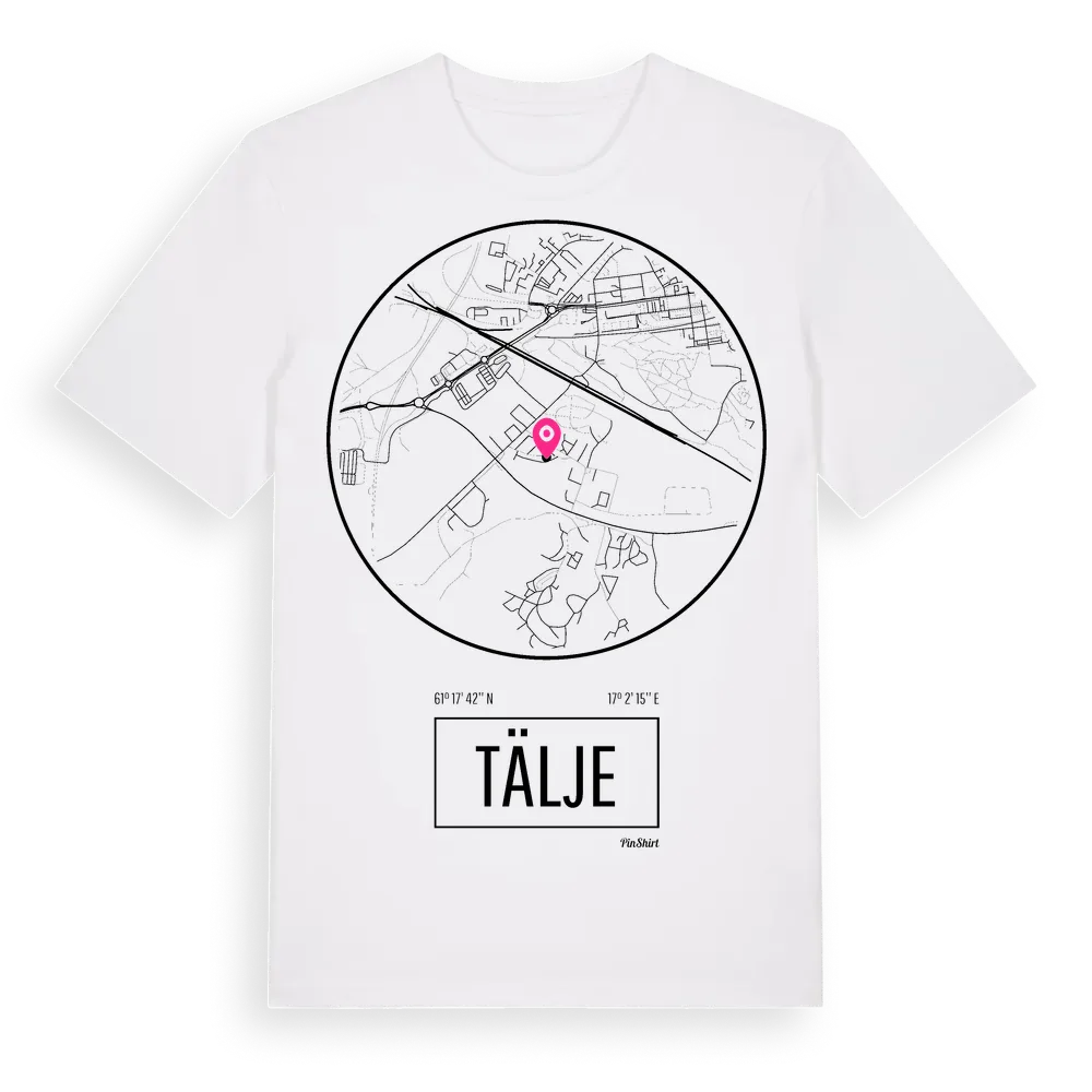 Ett rent, runt tryck med Täljes namn. Minimalistiskt och stilrent – perfekt för den som känner platsen utan att skrika det. Premium bomull, unisex – från stadsdelen Tälje i Gävleborgs län.