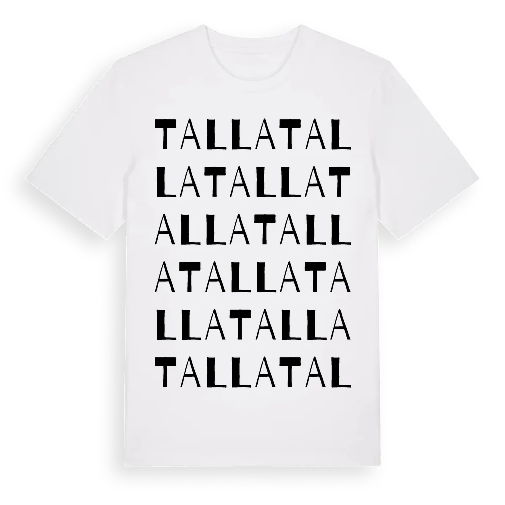 En ordlek byggd på Tallas namn. Subtilt och klurig – ett motiv som bara de som verkligen känner platsen fullt ut förstår. Premium bomull, unisex – från Talla i Gävleborgs län.