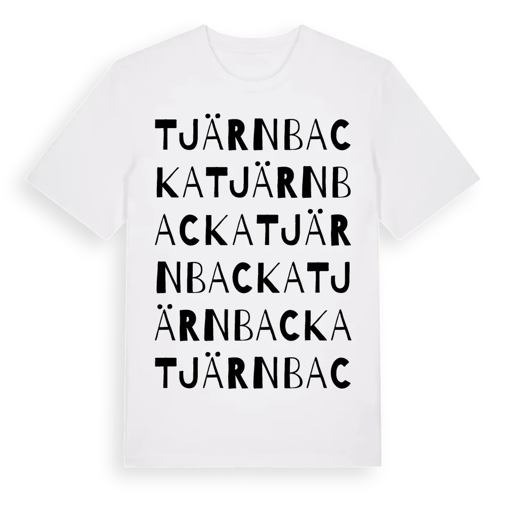 Tjärnbacka ordlek t-shirt är inspirerad av Tjärnbacka i Gävleborgs län, Sverige. Tröjan är designad för dig som har en speciell koppling till platsen – oavsett om du bor här, har rötterna här eller bara älskar Tjärnbacka.