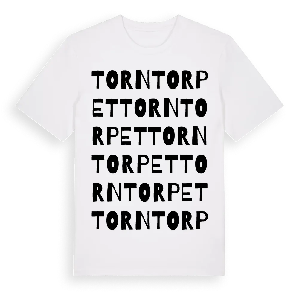 Torntorpet ordlek t-shirt är inspirerad av Torntorpet i Gävleborgs län, Sverige. Tröjan är designad för dig som har en speciell koppling till platsen – oavsett om du bor här, har rötterna här eller bara älskar Torntorpet.