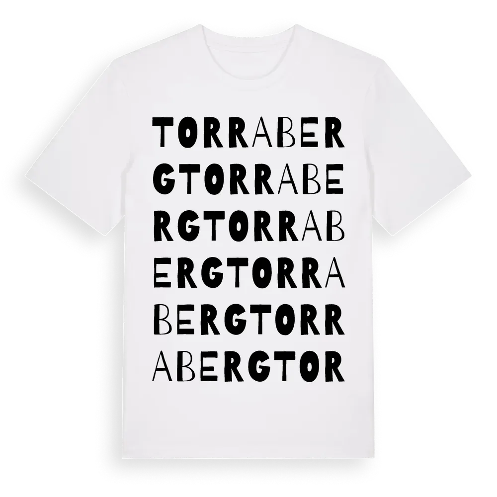 Torraberg ordlek t-shirt är inspirerad av byn Torraberg i Gävleborgs län, Sverige. Tröjan är designad för dig som har en speciell koppling till platsen – oavsett om du bor här, har rötterna här eller bara älskar Torraberg.