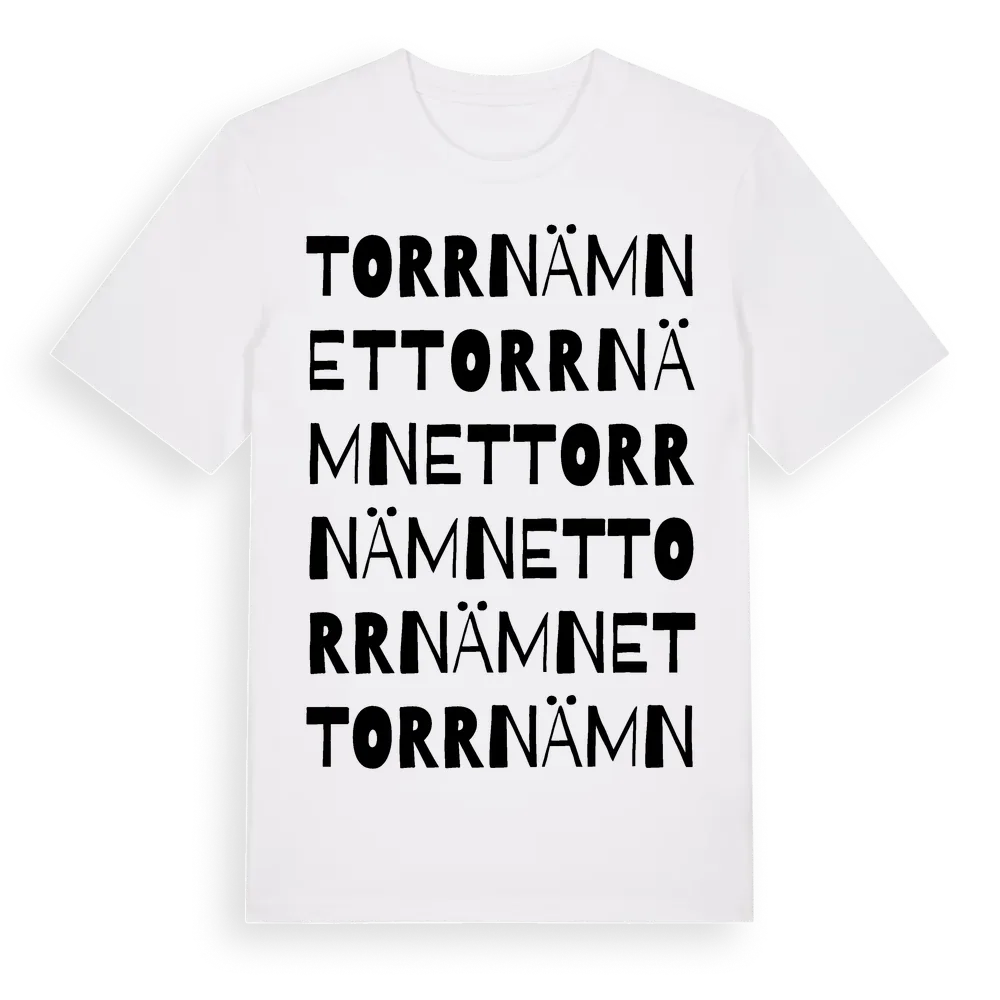 Torrnämnet ordlek t-shirt är inspirerad av Torrnämnet i Gävleborgs län, Sverige. Tröjan är designad för dig som har en speciell koppling till platsen – oavsett om du bor här, har rötterna här eller bara älskar Torrnämnet.
