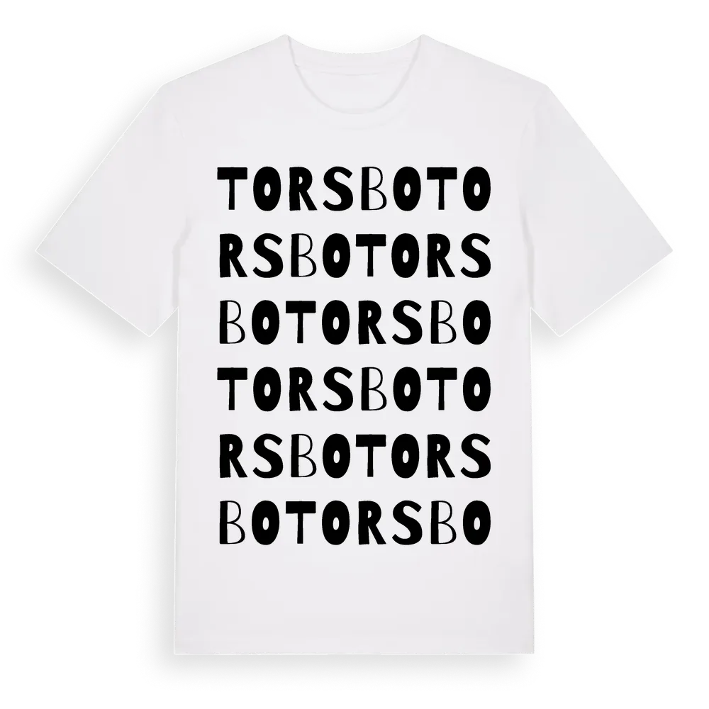 En ordlek byggd på Torsbos namn. Subtilt och klurig – ett motiv som bara de som verkligen känner platsen fullt ut förstår. Premium bomull, unisex – från Torsbo i Gävleborgs län.