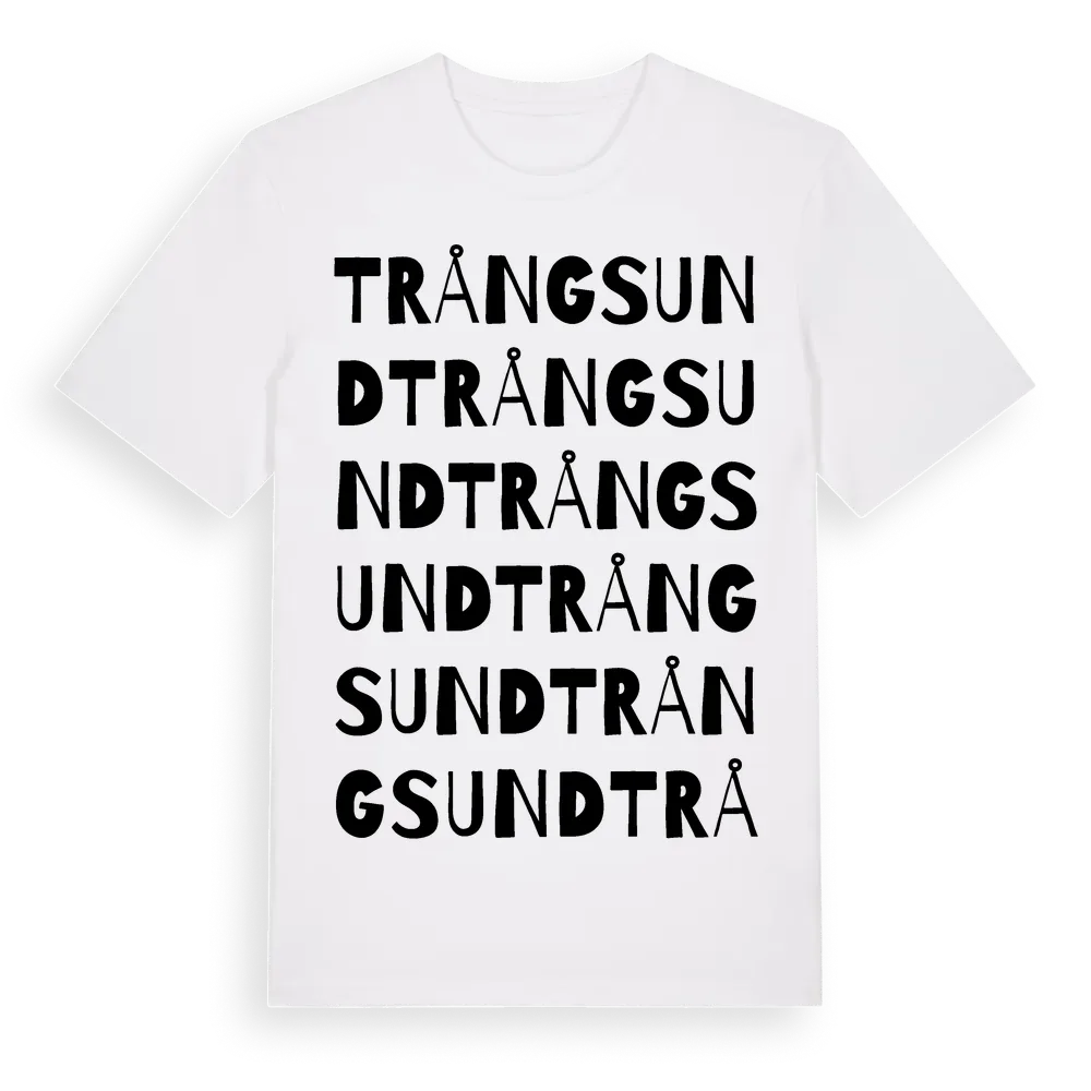 Trångsund ordlek t-shirt är inspirerad av byn Trångsund i Gävleborgs län, Sverige. Tröjan är designad för dig som har en speciell koppling till platsen – oavsett om du bor här, har rötterna här eller bara älskar Trångsund.