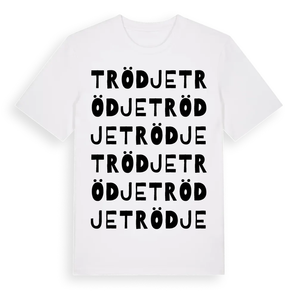 Trödje ordlek t-shirt är inspirerad av byn Trödje i Gävleborgs län, Sverige. Tröjan är designad för dig som har en speciell koppling till platsen – oavsett om du bor här, har rötterna här eller bara älskar Trödje.