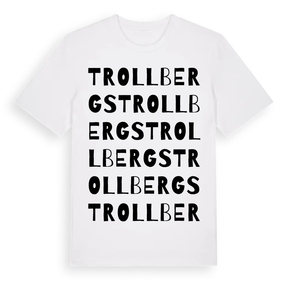Trollbergs ordlek t-shirt är inspirerad av Trollbergs i Gävleborgs län, Sverige. Tröjan är designad för dig som har en speciell koppling till platsen – oavsett om du bor här, har rötterna här eller bara älskar Trollbergs.