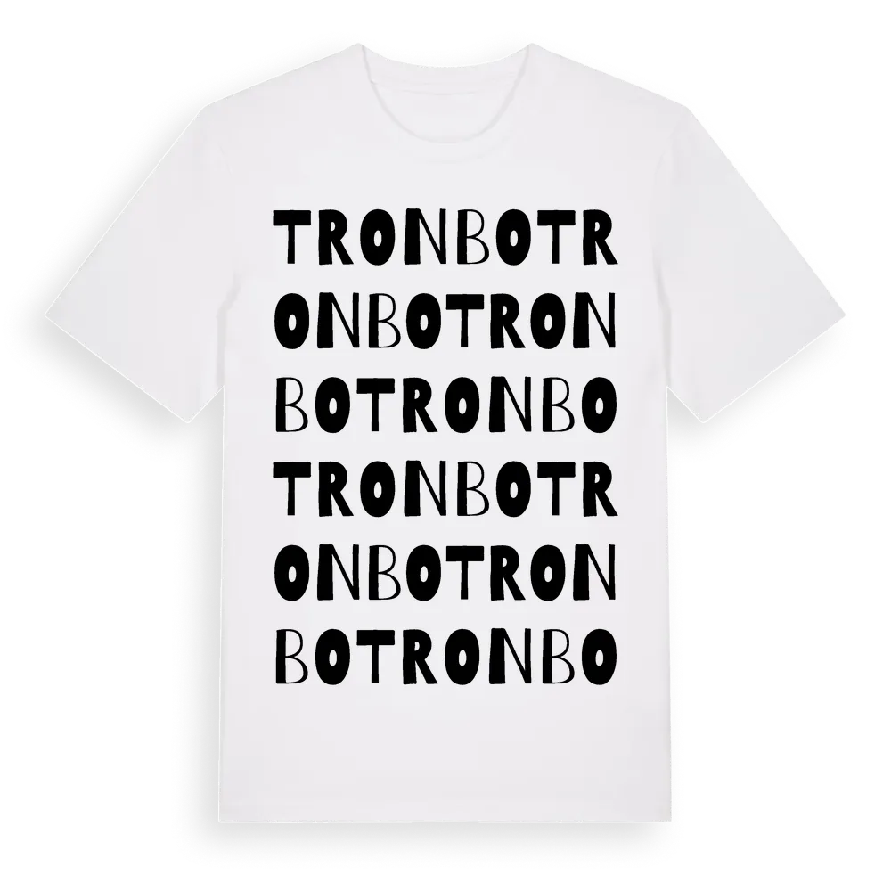 En ordlek byggd på Tronbos namn. Subtilt och klurig – ett motiv som bara de som verkligen känner platsen fullt ut förstår. Premium bomull, unisex – från byn Tronbo i Gävleborgs län.