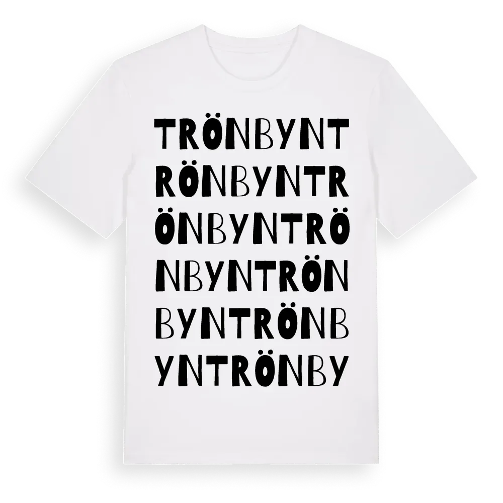 Trönbyn ordlek t-shirt är inspirerad av byn Trönbyn i Gävleborgs län, Sverige. Tröjan är designad för dig som har en speciell koppling till platsen – oavsett om du bor här, har rötterna här eller bara älskar Trönbyn.