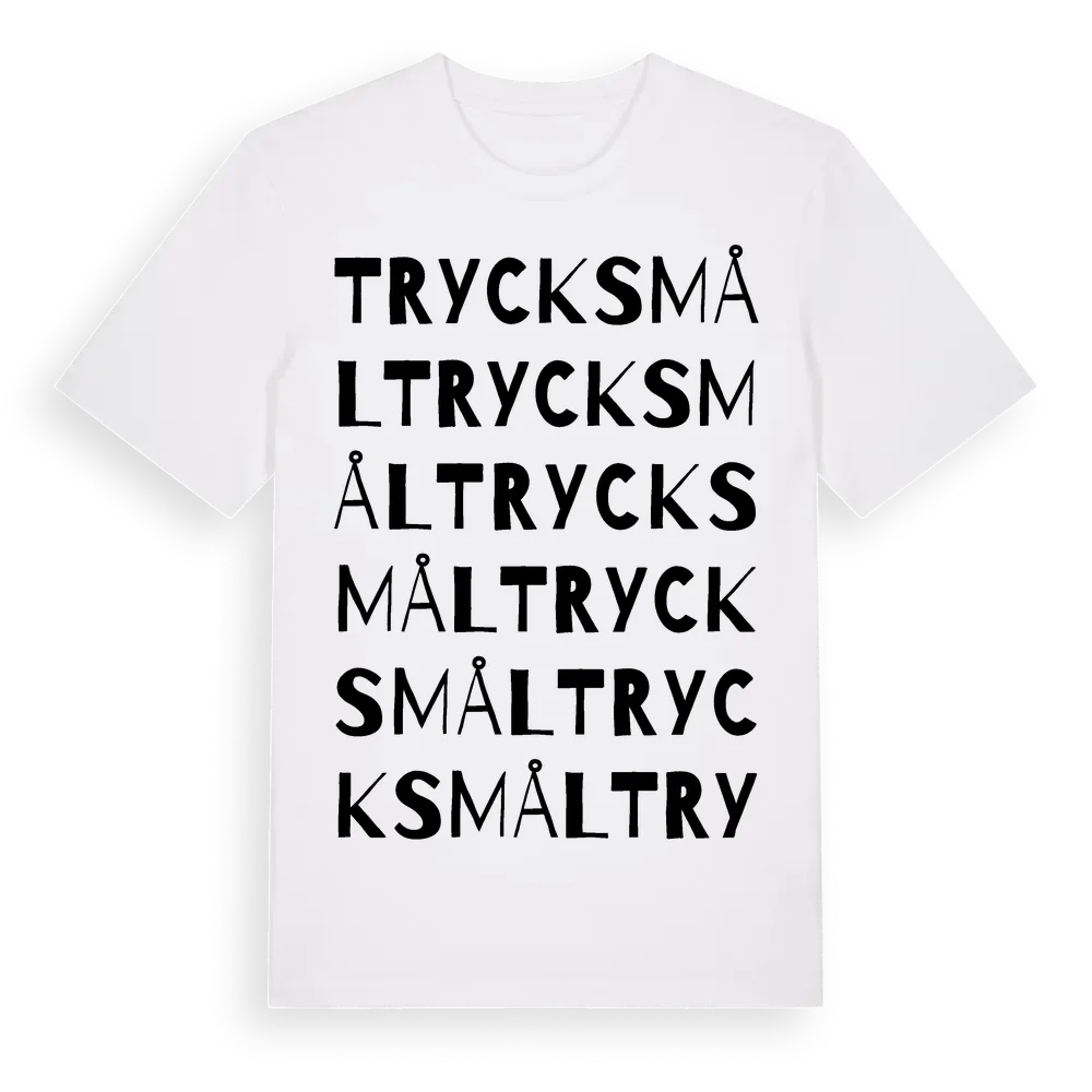 Trycksmål ordlek t-shirt är inspirerad av Trycksmål i Gävleborgs län, Sverige. Tröjan är designad för dig som har en speciell koppling till platsen – oavsett om du bor här, har rötterna här eller bara älskar Trycksmål.