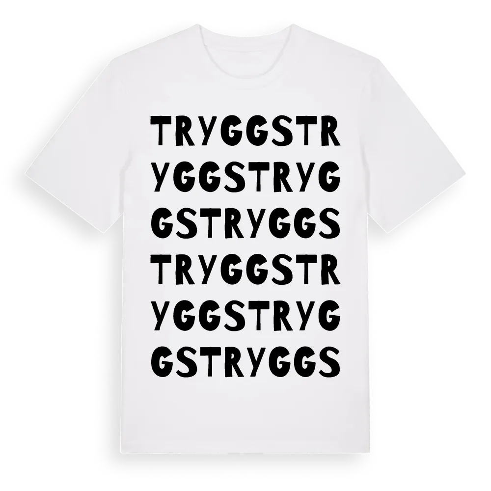 Tryggs ordlek t-shirt är inspirerad av Tryggs i Gävleborgs län, Sverige. Tröjan är designad för dig som har en speciell koppling till platsen – oavsett om du bor här, har rötterna här eller bara älskar Tryggs.