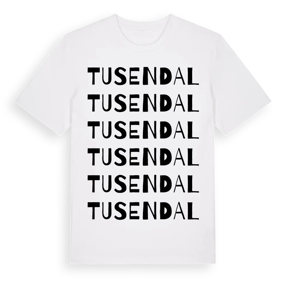 Tusendal ordlek t-shirt är inspirerad av Tusendal i Gävleborgs län, Sverige. Tröjan är designad för dig som har en speciell koppling till platsen – oavsett om du bor här, har rötterna här eller bara älskar Tusendal.