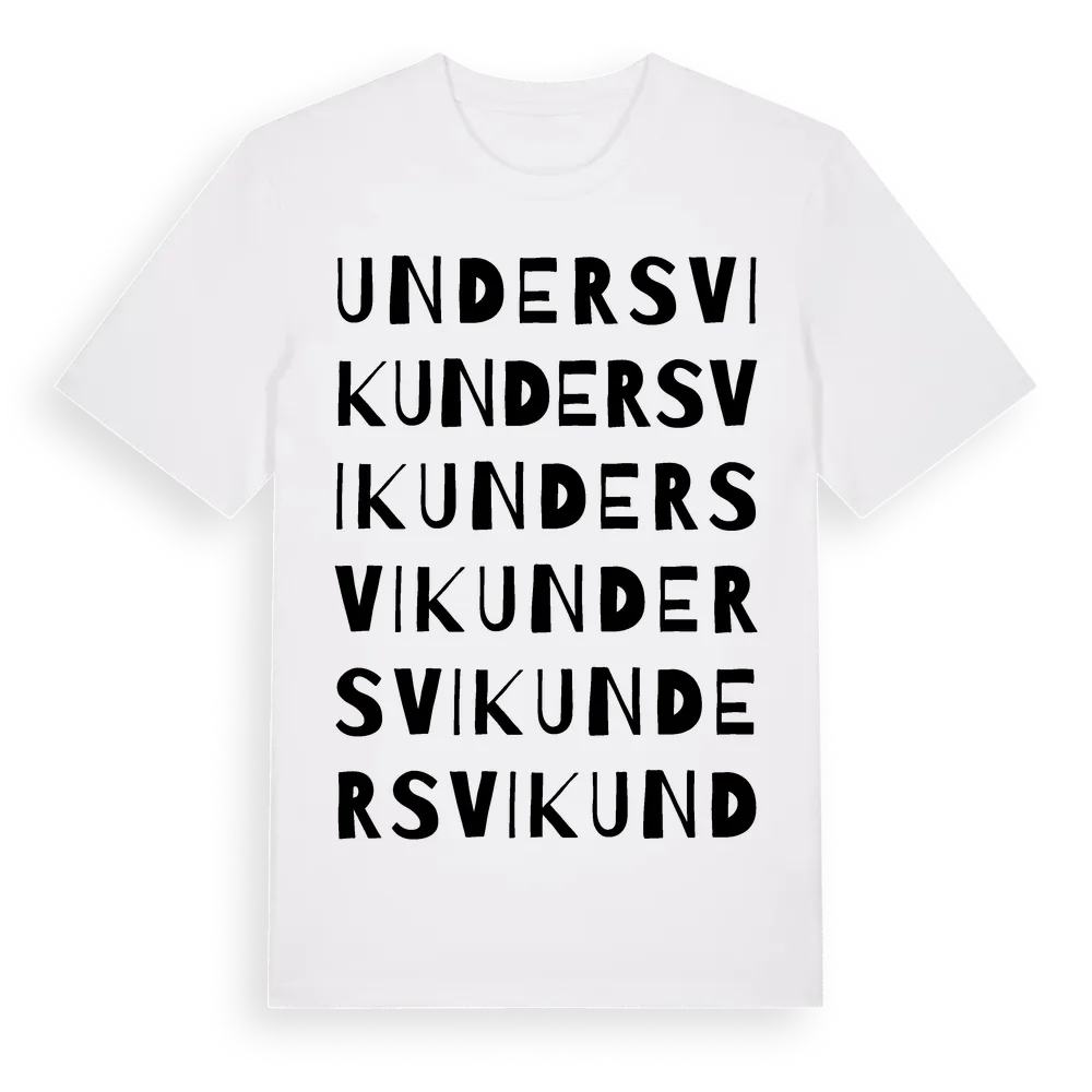 Undersvik ordlek t-shirt är inspirerad av byn Undersvik i Gävleborgs län, Sverige. Tröjan är designad för dig som har en speciell koppling till platsen – oavsett om du bor här, har rötterna här eller bara älskar Undersvik.