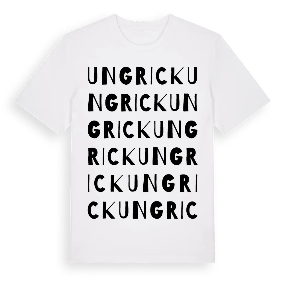 Ungrick ordlek t-shirt är inspirerad av byn Ungrick i Gävleborgs län, Sverige. Tröjan är designad för dig som har en speciell koppling till platsen – oavsett om du bor här, har rötterna här eller bara älskar Ungrick.