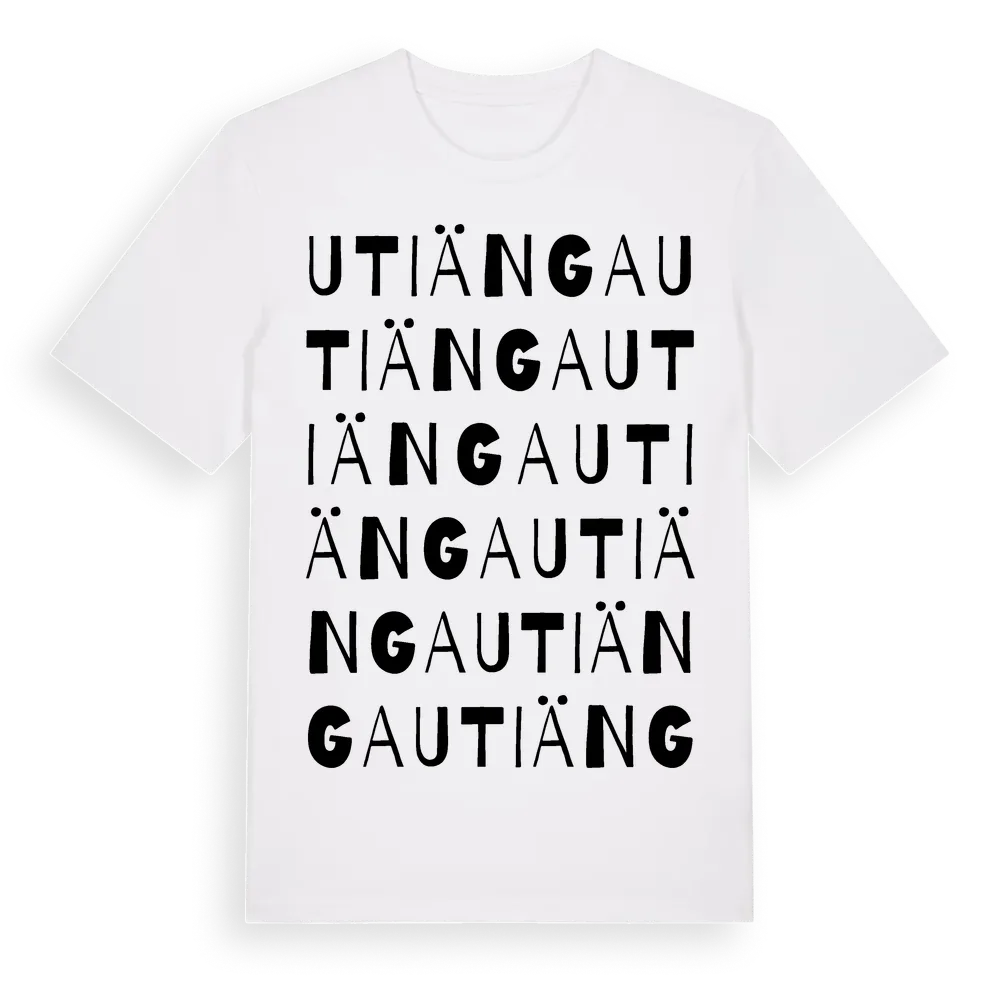 Utiänga ordlek t-shirt är inspirerad av byn Utiänga i Gävleborgs län, Sverige. Tröjan är designad för dig som har en speciell koppling till platsen – oavsett om du bor här, har rötterna här eller bara älskar Utiänga.
