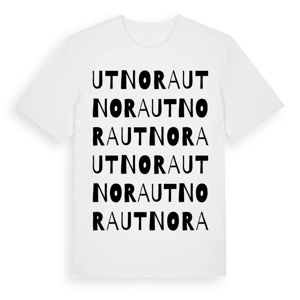 Utnora ordlek t-shirt är inspirerad av byn Utnora i Gävleborgs län, Sverige. Tröjan är designad för dig som har en speciell koppling till platsen – oavsett om du bor här, har rötterna här eller bara älskar Utnora.