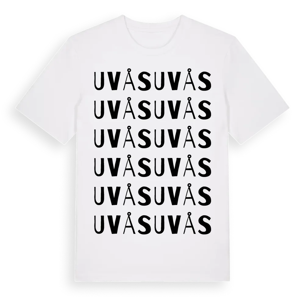 Uvås ordlek t-shirt är inspirerad av byn Uvås i Gävleborgs län, Sverige. Tröjan är designad för dig som har en speciell koppling till platsen – oavsett om du bor här, har rötterna här eller bara älskar Uvås.