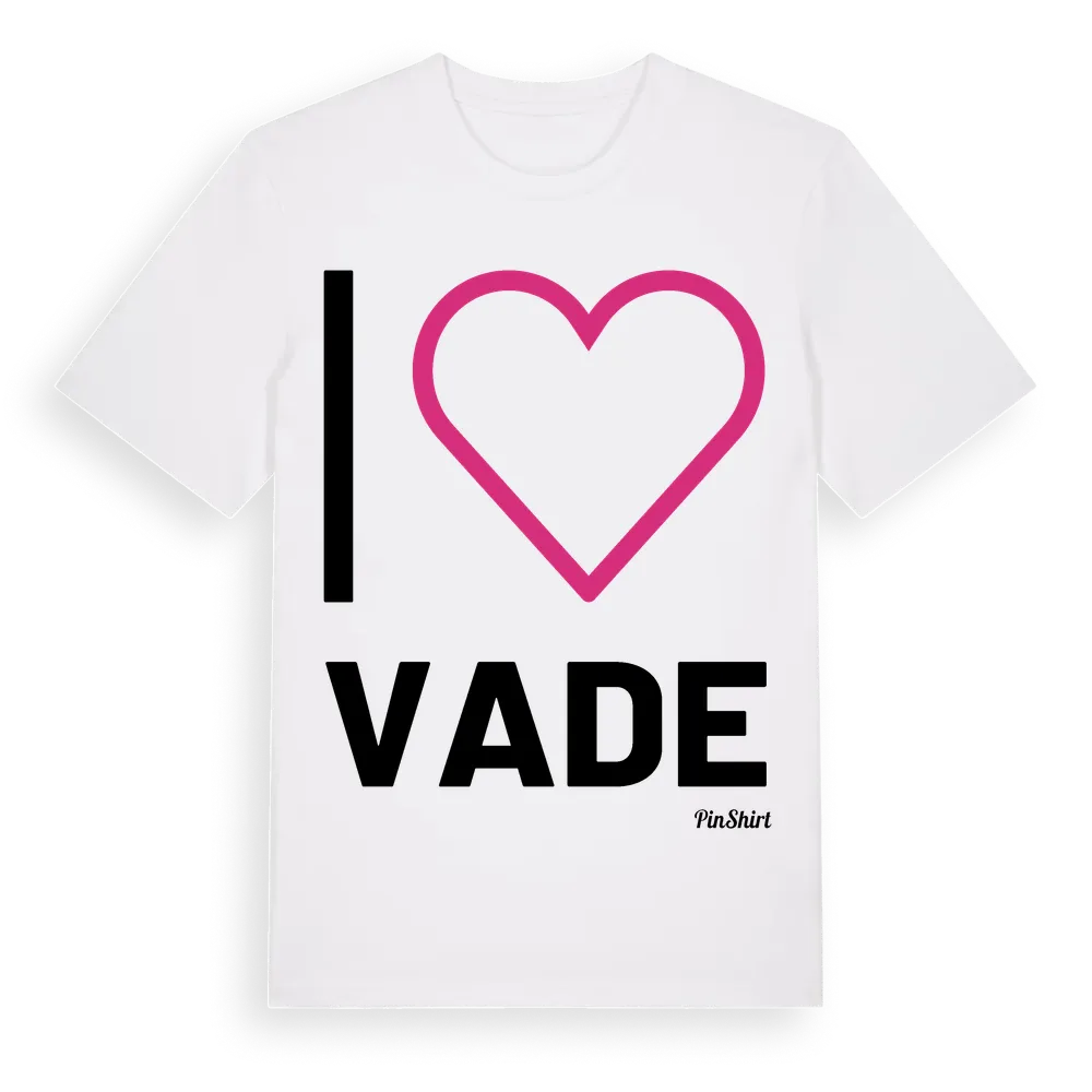 Det klassiska "I ❤ Vade"-motivet i stort format som täcker hela bröstet. För dig som vill visa kärleken till Vade på riktigt. Premium bomull, unisex – från byn Vade i Gävleborgs län.