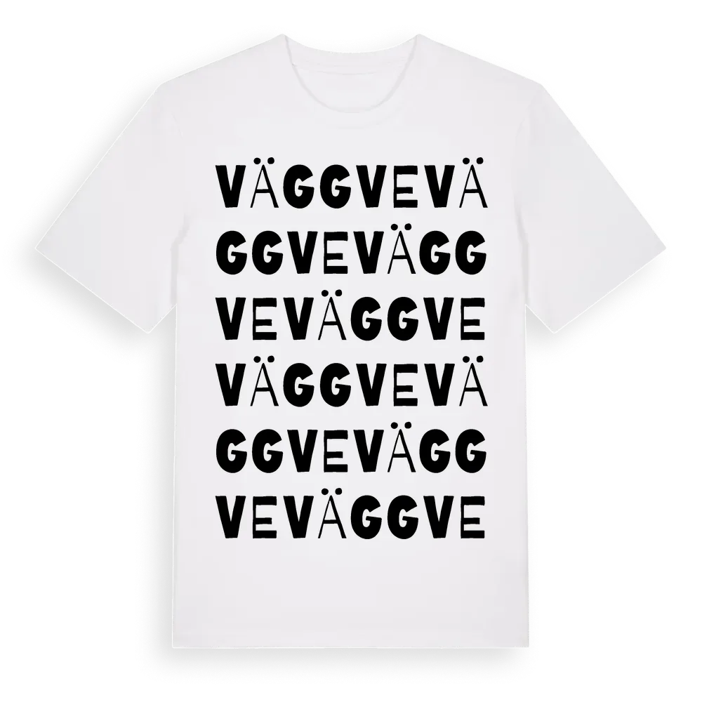 En ordlek byggd på Väggves namn. Subtilt och klurig – ett motiv som bara de som verkligen känner platsen fullt ut förstår. Premium bomull, unisex – från Väggve i Gävleborgs län.