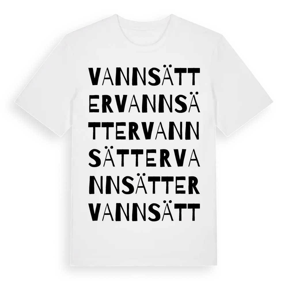 Vannsätter ordlek t-shirt är inspirerad av byn Vannsätter i Gävleborgs län, Sverige. Tröjan är designad för dig som har en speciell koppling till platsen – oavsett om du bor här, har rötterna här eller bara älskar Vannsätter.